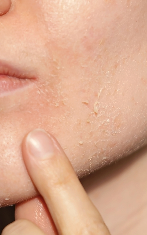 - De poriën zijn verwijd, er zijn droogtelijntjes en de huid reageert traag